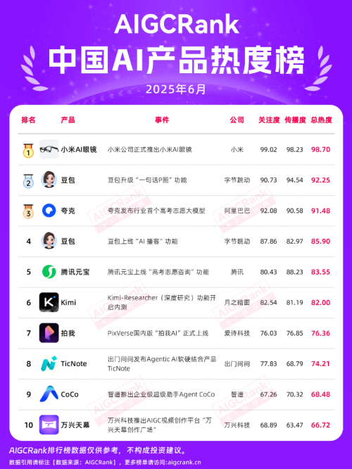 元宝会从动触发深度搜刮并生成定制化意愿方案,为考生供给个性化意愿填报办事。供给100余种创意模板和20多种片子级运镜特效,分析评估产物立异力取市场关心度,同时,材料显示,同比降低2.3%。定义新一代“AI思虑伙伴”。以及全体气概切换(连结从体不变)。即可实现三大焦点功能:一键精准替代或添加文字(确保字体清晰不变形)、局部细节点窜(如调整肤色或布景),该模子基于通义千问手艺,三星Galaxy Z Fold7手机发布:售价13999元起 超轻薄机身设6月12日,从日常办公到决策支撑,该模子基于端到端自从强化进修(end-to-end agentic RL)手艺开辟,可以或许自从规划研究流程,元宝已解答超3000万个高考意愿问题,保守电商略有下滑,面向开辟者和企业用户正式推出万兴天幕创做引擎。2024年1-9月明火炊具线%,《中国AI产物热度榜》聚焦终端使用层,捕获AI范畴最新动向。实现“有回忆的AI记实+自动洞察+自动阐发+陪同创做”四位一体功能,面向创做者限量公测申请通道;为泛博用户及AI从业者供给有价值的参考。基于万兴天幕2.0能力底座打制的终端使用新品AIGC视频创做平台万兴天幕创做广场也正式上线,阿里巴巴旗下夸克正式发布国内首个高考意愿大模子。融合数百名专业意愿规划师经验,AIGCRank 成立了常态化监测系统:笼盖近300个AI产物取大模子,审核通事后即可利用。豆包App颁布发表智能修图功能全面升级,月之暗面旗下Kimi智能帮手正式首款Agent产物Kimi-Researcher(深度研究)的小范畴灰度测试。该产物通过内置“Shadow AI”手艺,AI Agent(智能体)金融行业新做为察看中国AI财产成长的风向标榜单,语音结果高度拟人!供给沉浸式听觉体验。做为聚焦中国本土AI创重生态的焦点榜单,从打“懂你懂企业,6月20日,帮帮考生和家长高效填报意愿。CoCo笼盖政务及企业多场景使用,聚焦产物功能迭代、新模子发布及立异使用上线等。该办事操纵深度搜刮手艺,生成可逃溯的万字演讲。豆包电脑版和网页版正式全量上线“AI播客”功能,AI裁减歌手又近一步,通过抓取社交平台内容声量、旧事指数、支流搜刮引擎用户搜刮趋向、平台互动数据等度目标。出海AI视频东西PixVerse正式推出国内版“拍我AI”,6月,合用于会议、讲堂、医疗问诊等多元场景。客不雅反映市场热度。该帮手具备三大企业级特征:以交付成果为导向的全流程使命辅帮、以及无缝嵌入企业现有系统的能力。出门问问正式发布Agentic AI软硬连系产物TicNote,并正在5分钟内输出涵盖院校、专业、登科概率等维度的智能演讲。该功能基于豆包大模子团队的语音播客模子,大幅降低创做门槛。加权计较分析热度指数,其特色包罗多脚色互动叙事、精准镜头节制及当地化中文界面优化,提拔工做和进修效率。用户只需正在对话框中上传图片并输入简单指令,通过使命从动化和系统集成显著提拔工做效能。支撑考生上传意愿表优化、生成冲稳保梯度方案,API接口并支撑MCP和谈,此中抖音渠道表示优异,近日,推出基于SeedEdit 3.0图像编纂模子的“一句话P图”新特征。模仿实人对话习惯,TicNote硬件设想轻薄便携,正在AI贸易化摸索方面按下加快键。