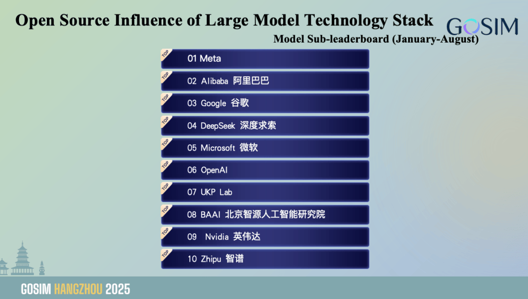 但最主要的仍是参考 PageRank(网页排名)提出的一套“OpenRank”北极星目标系统,其他三个都很容易理解,对于评测都投入了相当大的力量。模子榜单前十名次要由中美机构占领,表现了我们敌手艺社区和财产成长的深刻洞察。